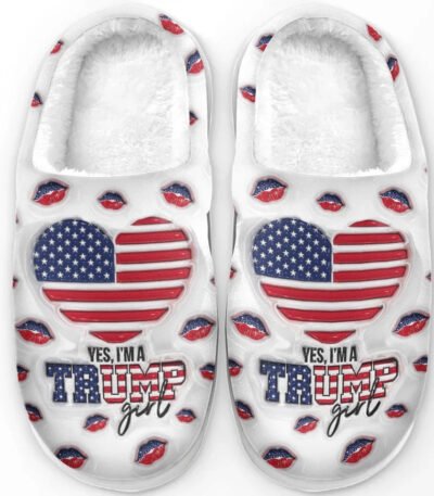 An All-American Girl – US Election Fluffy Slippers – Christmas Gift For Conservative Supporters – Gift For Best Friends. BFF. Sisters