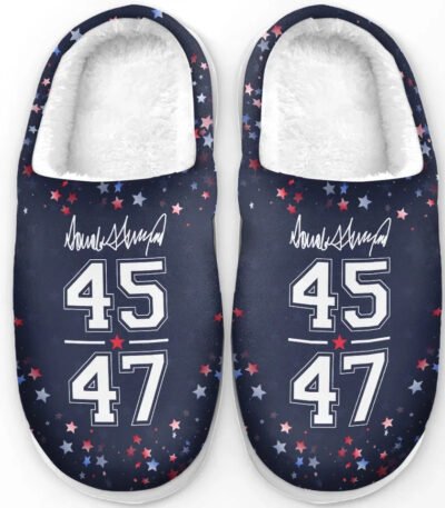 Team 45 47 – US Election Fluffy Slippers – Christmas Gift For Conservative Supporters