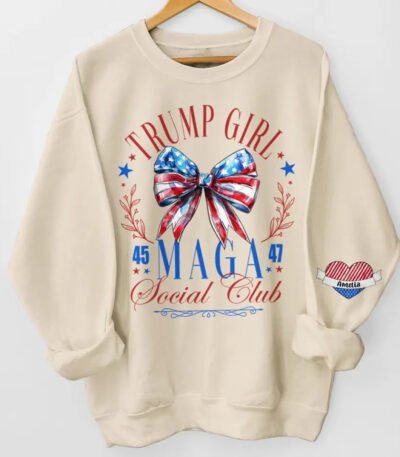 Trump Girl. MAGA Social Club – Trump US Elections Personalized Custom Unisex Sweatshirt With Design On Sleeve – Gift For Best Friends. BFF. Sisters