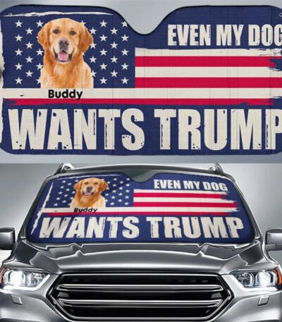 Custom Photo Even My Dog Wants Trump – US Elections Auto Windshield Sunshade. Car Window Protector – Gift For Trump Supporters