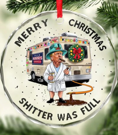Cousin T Refuels And Enjoys This Christmas – US Elections Circle Glass Ornament – Christmas Gift And Decor For Conservative Supporters