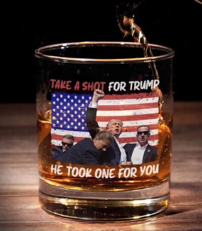 Take A Shot For Him. He Took One For You – US Election Whiskey Glass – Gift For Conservative Supporters