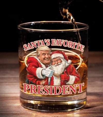Santa’s Favorite President – US Election Whiskey Glass – Christmas Gift For Conservative Supporters