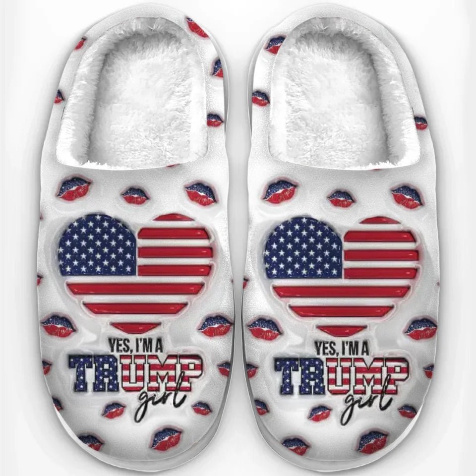 An All-American Girl – US Election Fluffy Slippers – Christmas Gift For Conservative Supporters – Gift For Best Friends. BFF. Sisters