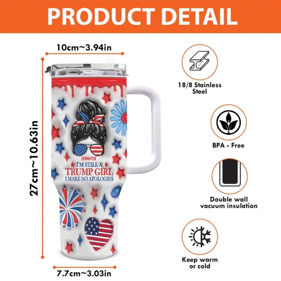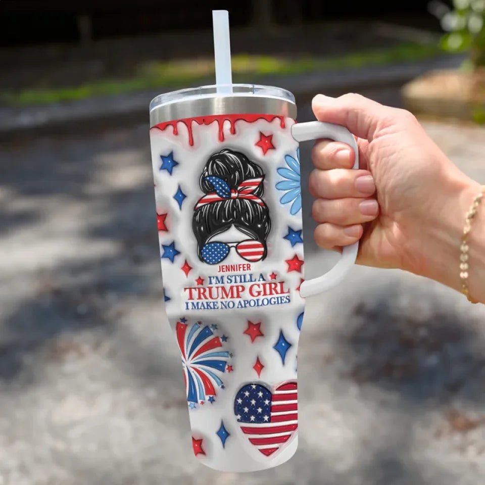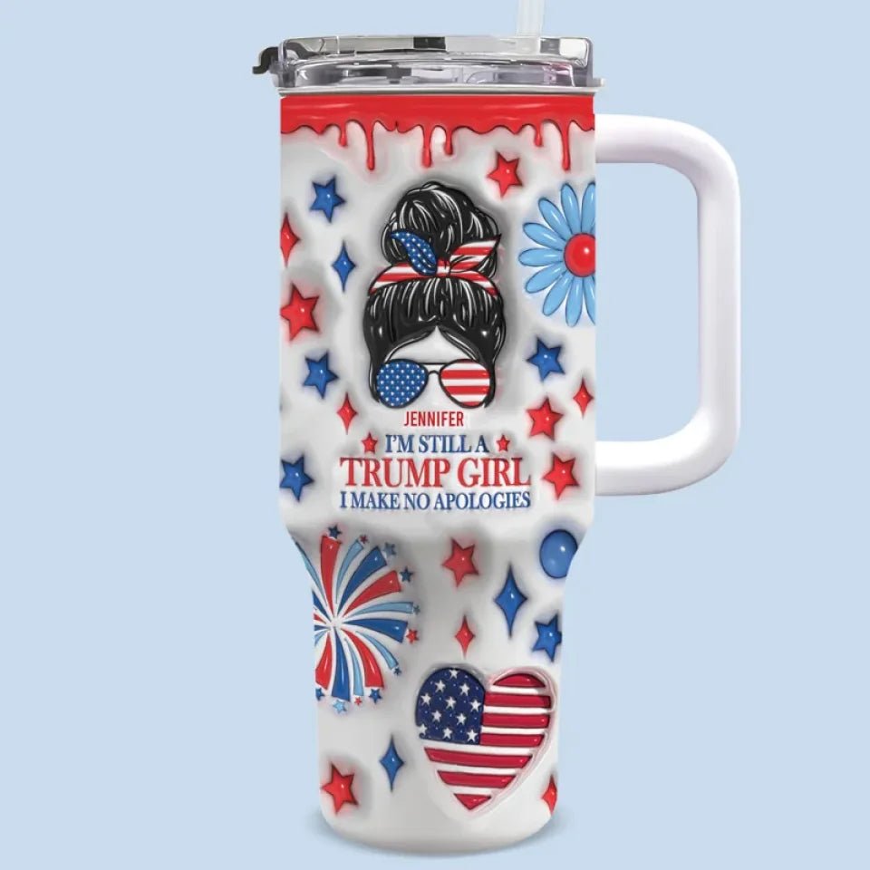 Beautiful Girl Voted 45 And Will Do It Again – US Election 3D Inflated Effect Printed 40 Oz Stainless Steel Tumbler With Handle – Gift For Best Friends. BFF. Sisters