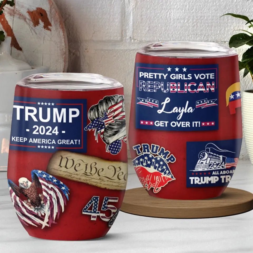 Pretty Girls Vote Republican – US Elections Personalized Custom Wine Tumbler. Trump Tumbler – Gift For Best Friends. BFF. Sisters