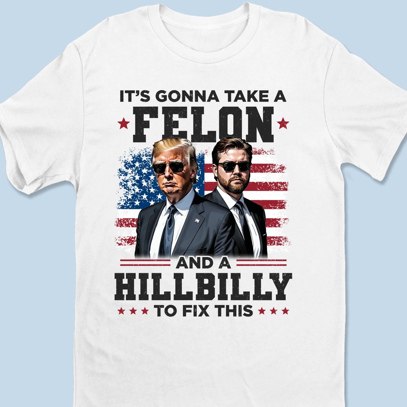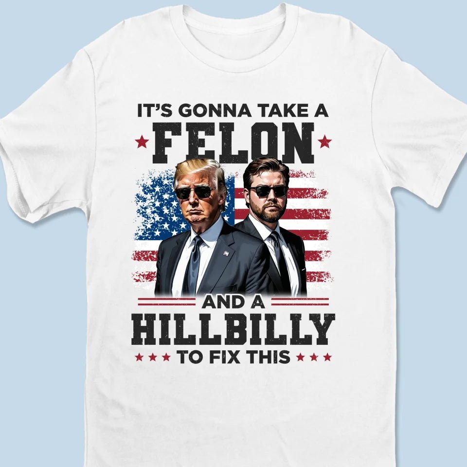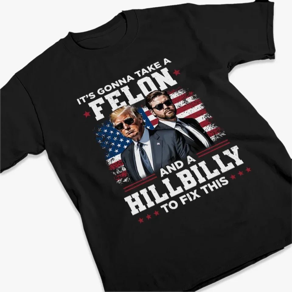 It’s Gonna Take A Felon And A Hillbilly To Fix This – US Election Unisex T-shirt. Premium T-shirt. Hoodie