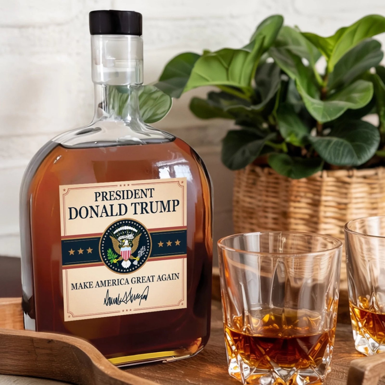 Introducing the US Patriotic Pride Edition Collection. This whiskey bottle is a statement piece for home bars. and special celebrations. a perfect blend of elegance and practicality. This is the perfect gift for anyone who is Republican or the 47th President supporters.