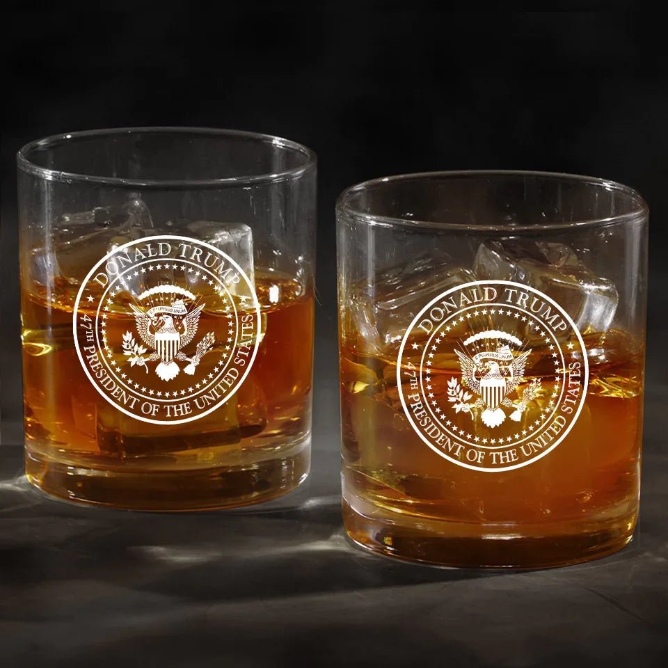 45 Or 47. He Won Again – US Election Whiskey Glass – Christmas Gift For Conservative Supporters