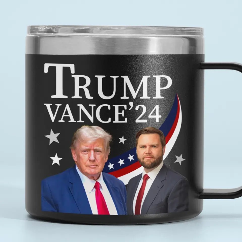 Trump Vance 2024. Ready To Fight – US Election 14oz Stainless Steel Tumbler With Handle