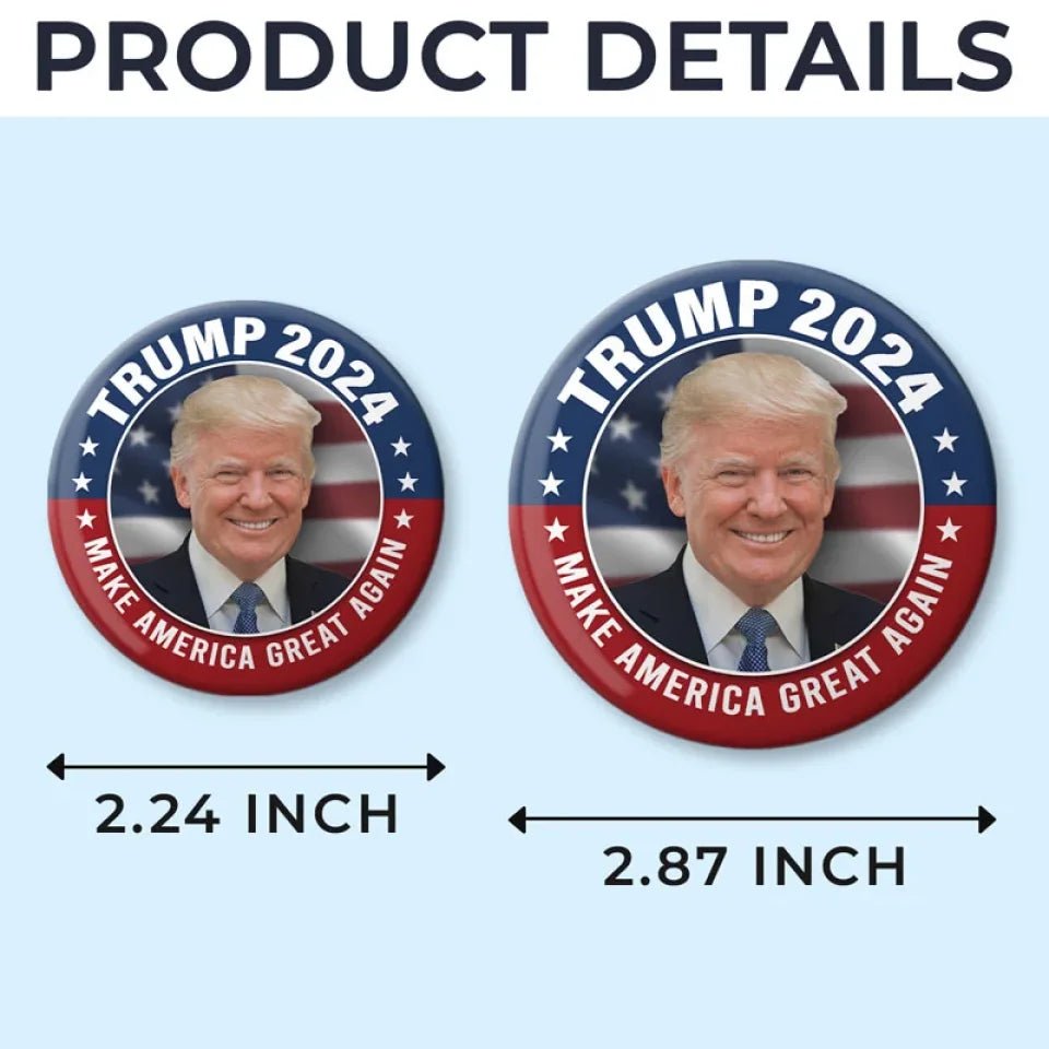 The PinBack Button comes in two perfect sizes. 2.2 inches and 2.8 inches. striking the ideal balance between eye-catching and comfortable. Each PinBack Button features exquisite craftsmanship with clear patterns. making it a stylish tribute to the Red-Wave. Versatile and suitable for both men and women. it pairs well with hats. clothing. and accessories. perfect for political rallies. events. or everyday wear. An excellent gift choice for Trump supporters. collectors. or anyone wanting to showcase their political stance.