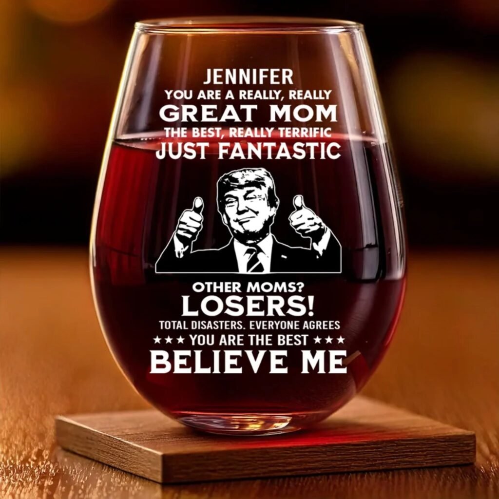 The Greatest Mom In The World – US Patriotic Pride Wine Glass