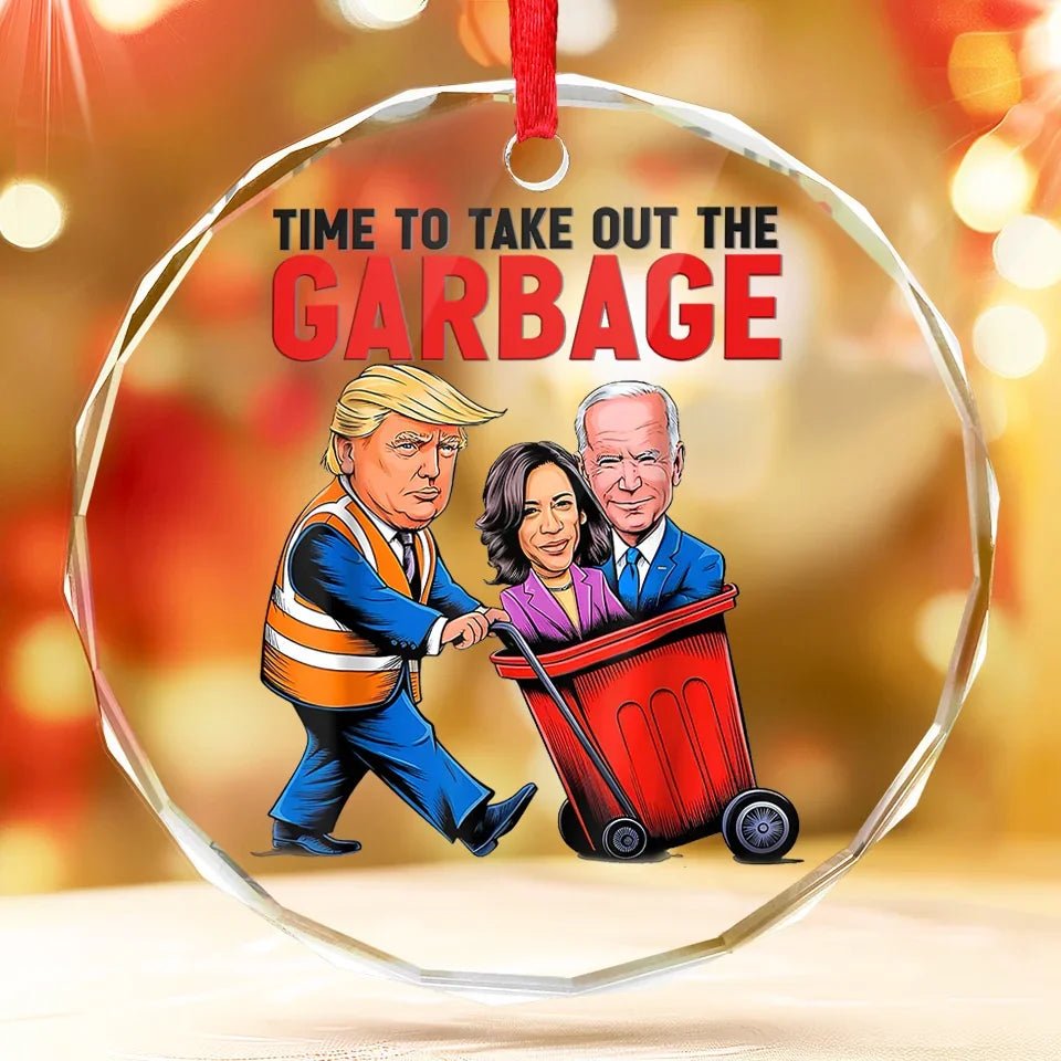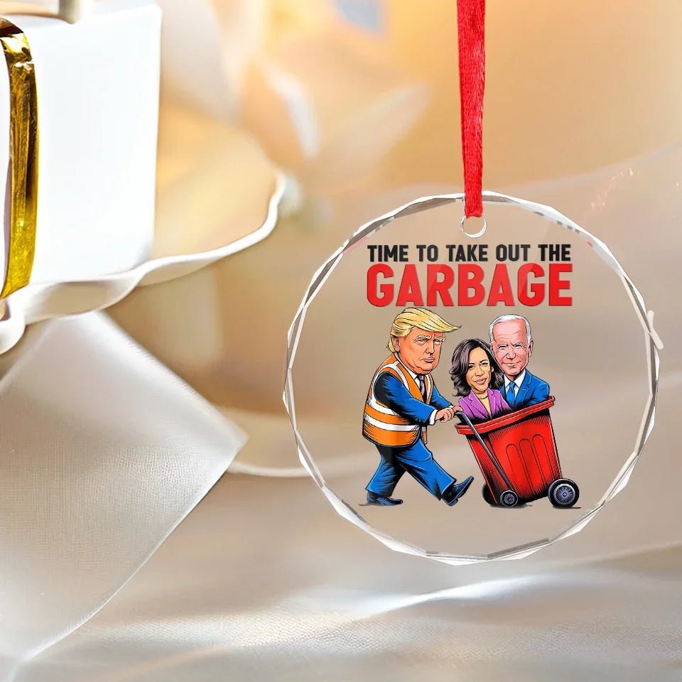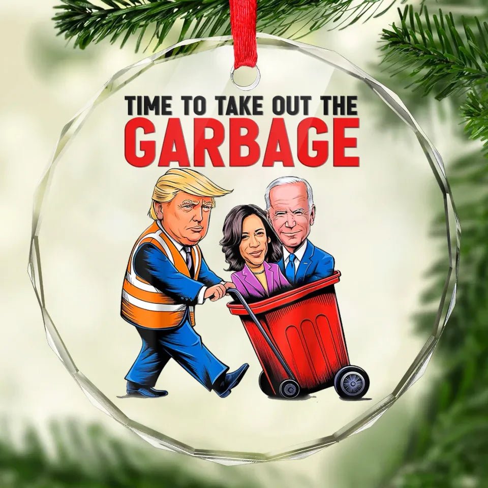 Time To Take Out The Garbage – US Elections Circle Glass Ornament – Christmas Gift And Decor For Conservative Supporters