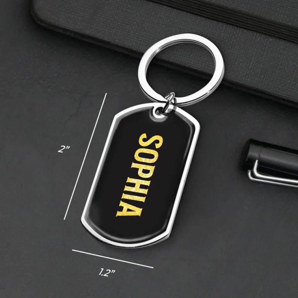 - Double sided keychain.