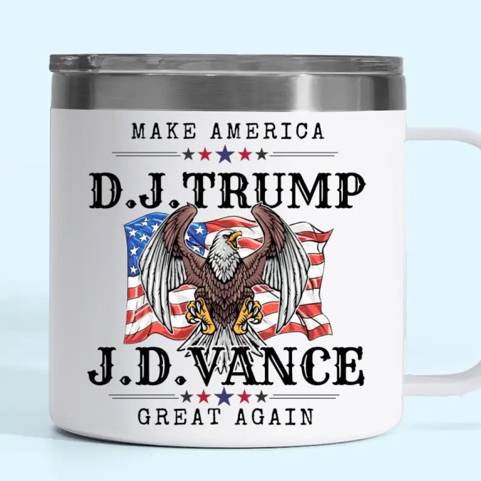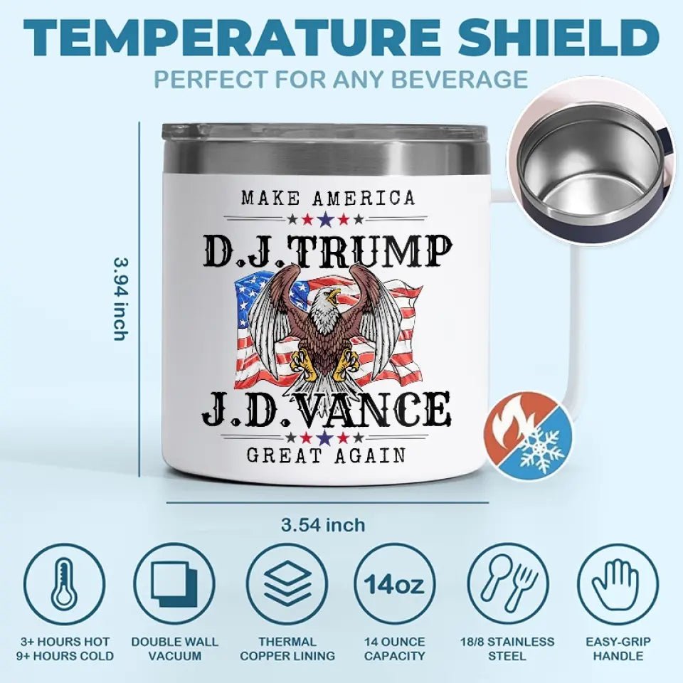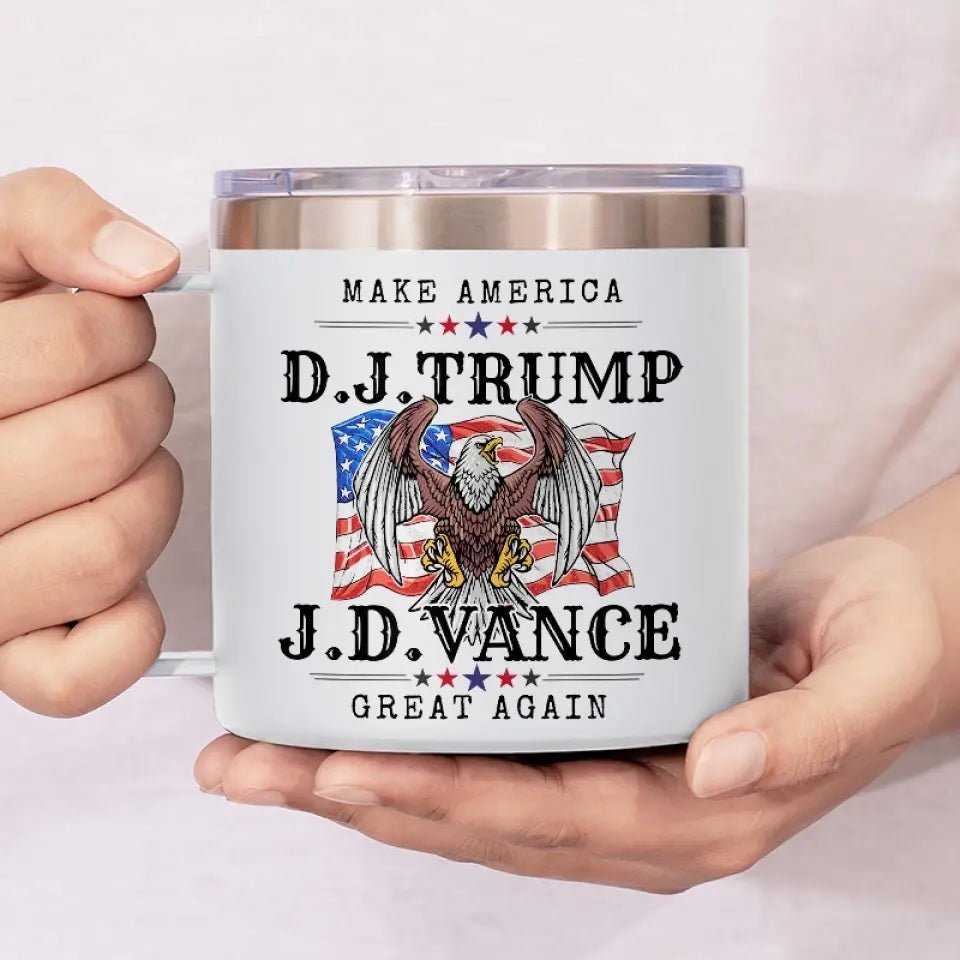 Trump And Vance. America’s Dream Team – US Election 14oz Stainless Steel Tumbler With Handle