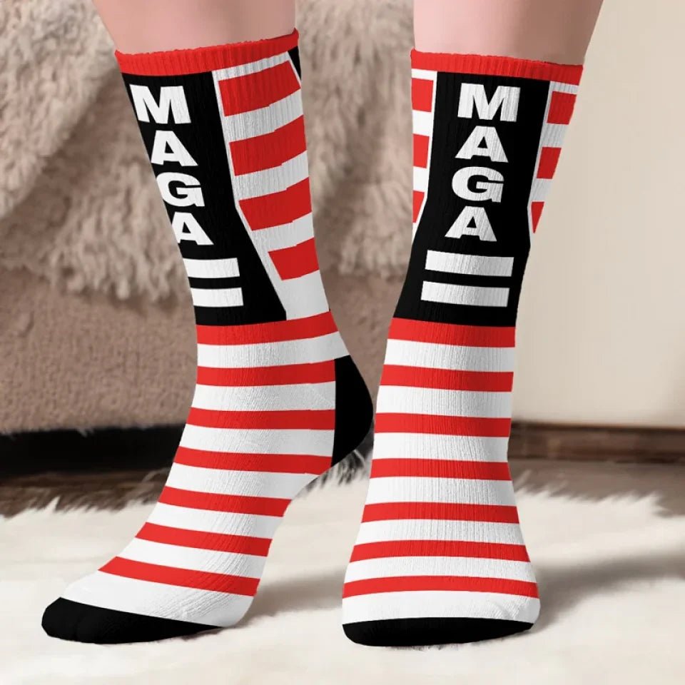 Step up your sock game with these Trump-themed Middle Tube Socks. designed to bring personality and comfort to every step. Perfect for Trump supporters or anyone looking for unique and practical footwear with a patriotic twist. these socks are crafted for durability and style.