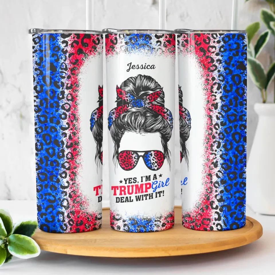 Yes I’m A Trump Girl – US Elections Personalized Custom Skinny Tumbler – Gift For Trump Supporters. Best Friends. BFF. Sisters