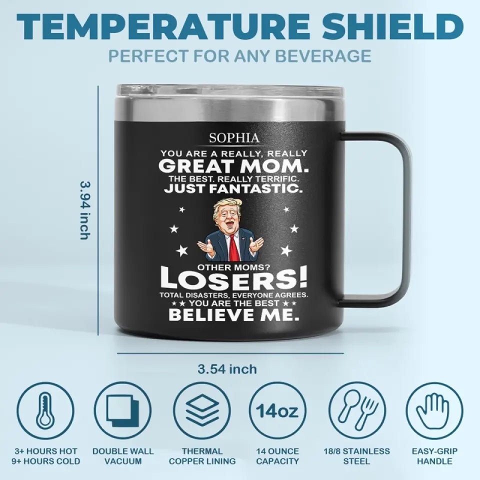 You Are The Best. Believe Me – US Election 14oz Stainless Steel Tumbler With Handle. Funny Trump Tumbler