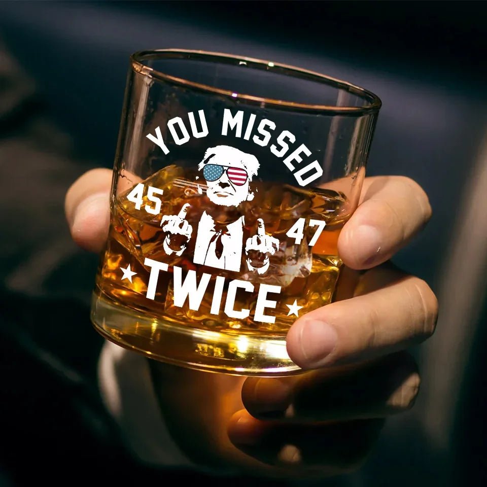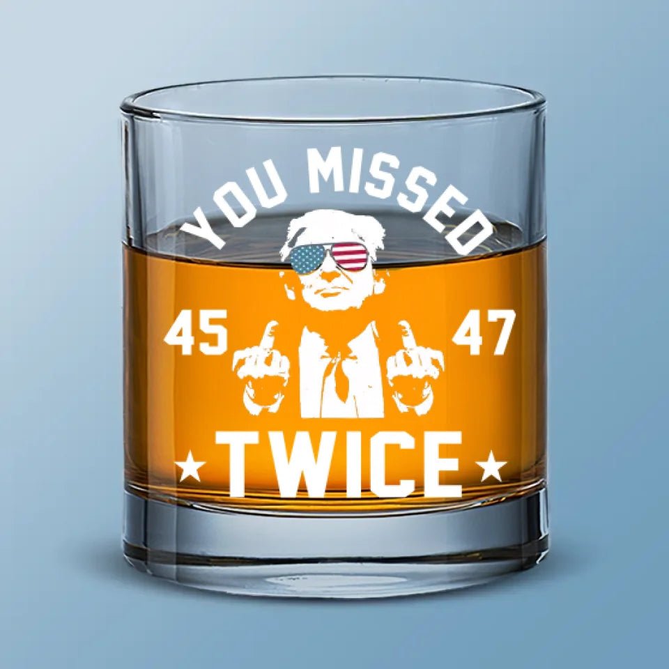 You Missed Twice – US Election Whiskey Glass – Gift For Conservative Supporters