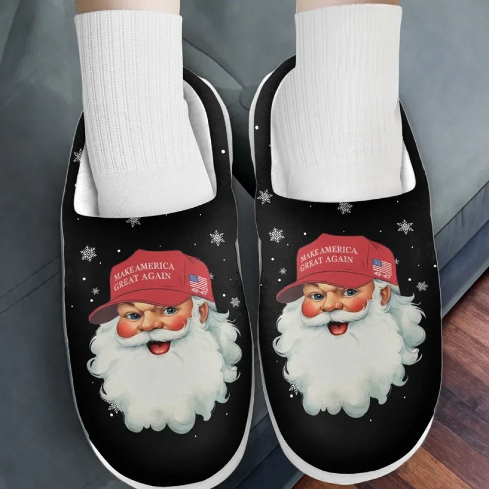 Your Santa Is Coming To Town – US Election Fluffy Slippers – Christmas Gift For Conservative Supporters