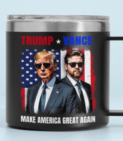 Trump Vance. Make America Stronger And Greater – US Election 14oz Stainless Steel Tumbler With Handle